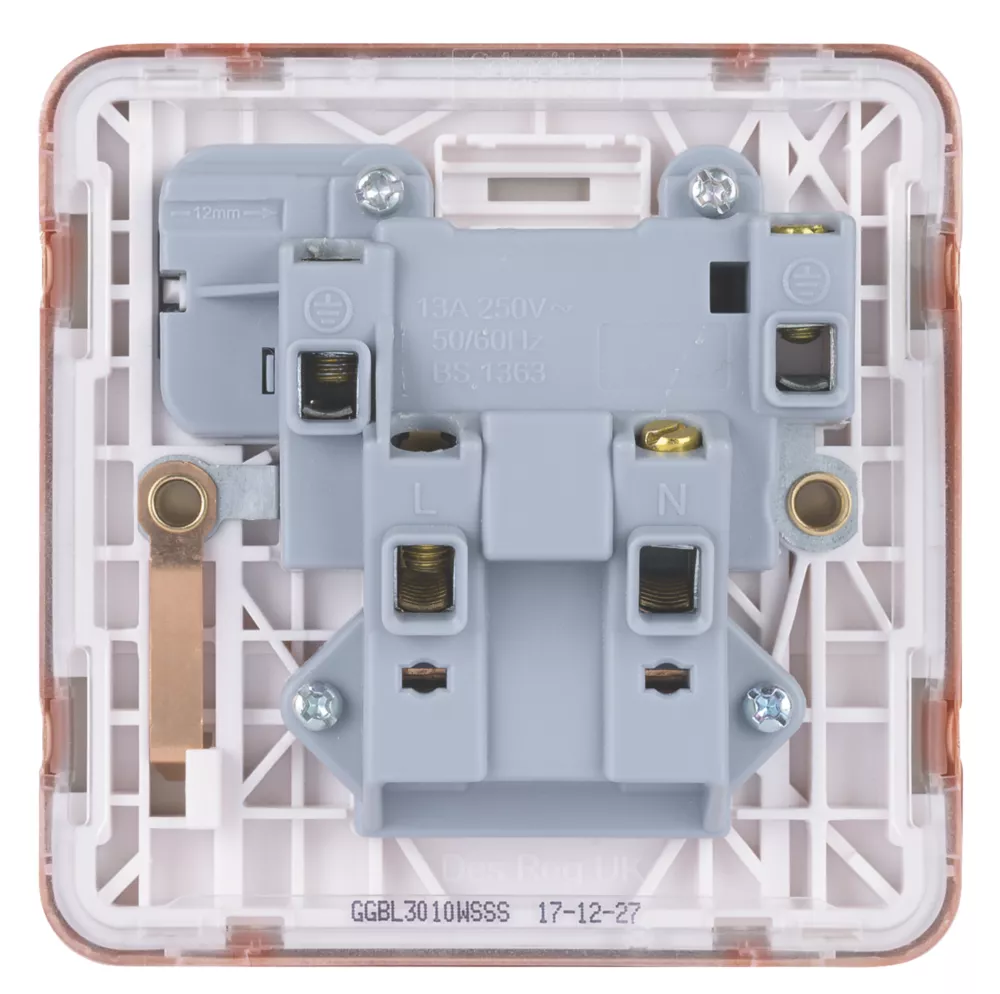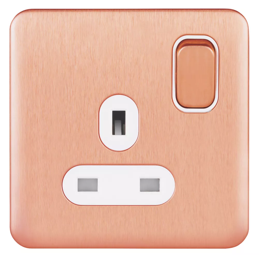 British General Nexus Metal 13A 1-Gang DP Switched Plug Socket Brushed Iridium With Black Inserts