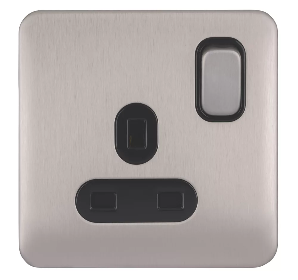 Knightsbridge FPR9000BC 13A 2-Gang DP Switched Double Socket Brushed Chrome With Black Inserts