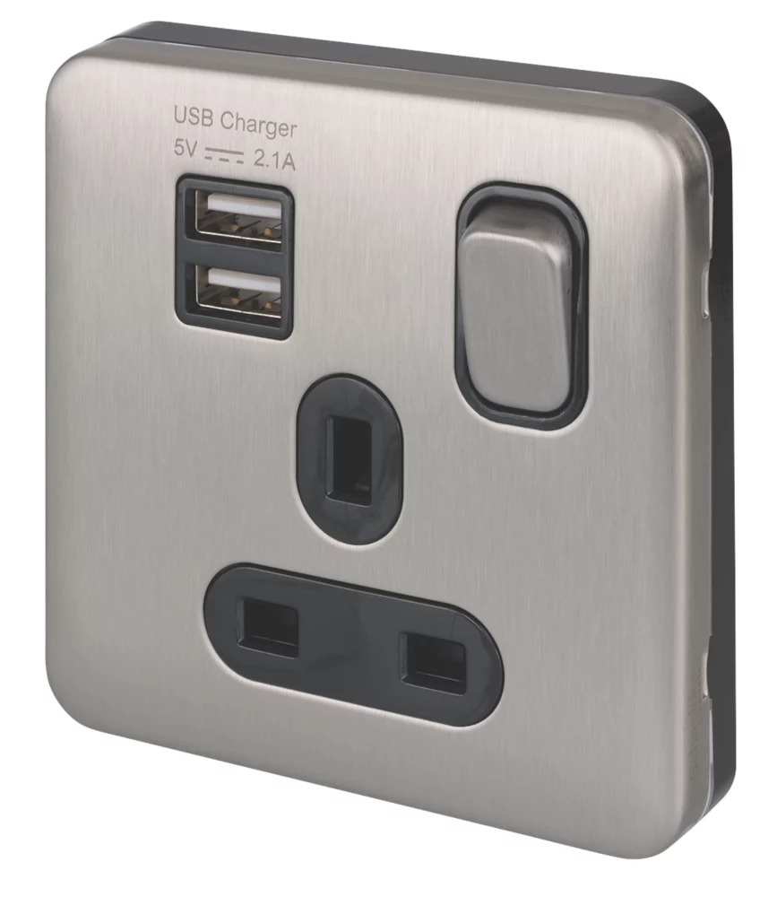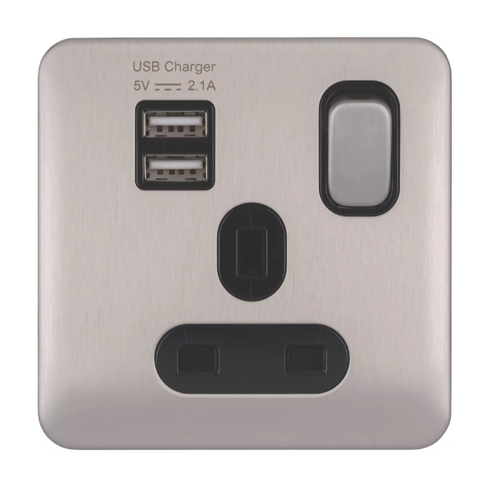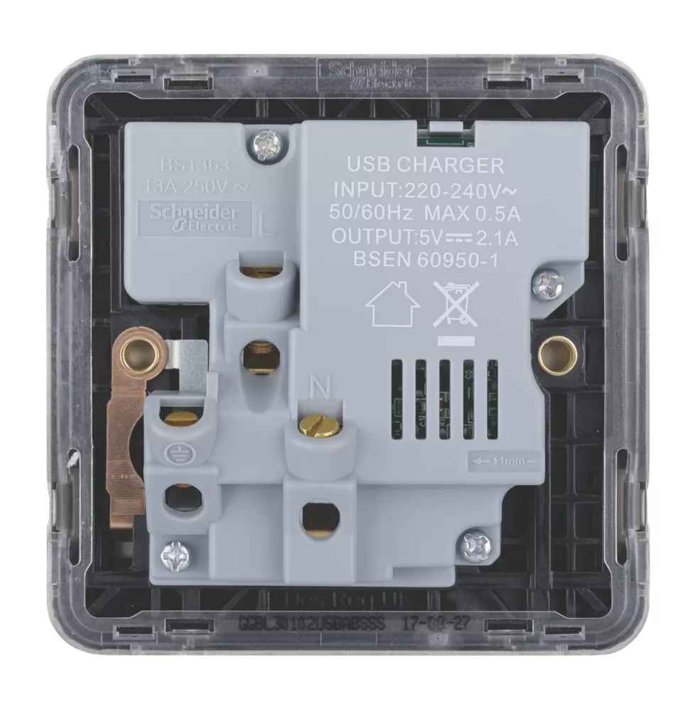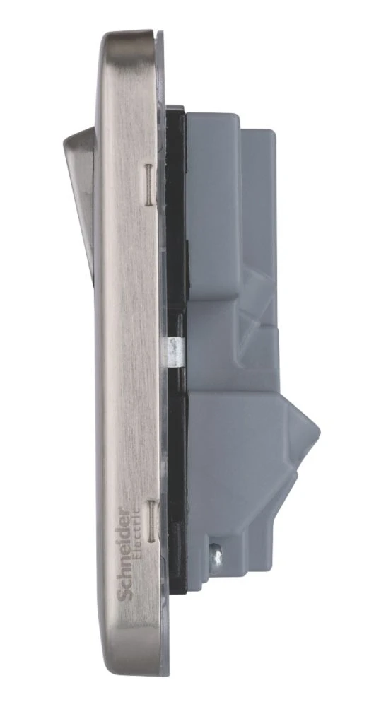 Schneider Electric Lisse Deco 13A 1-Gang SP Switched Plug Socket Polished Chrome With Black Inserts