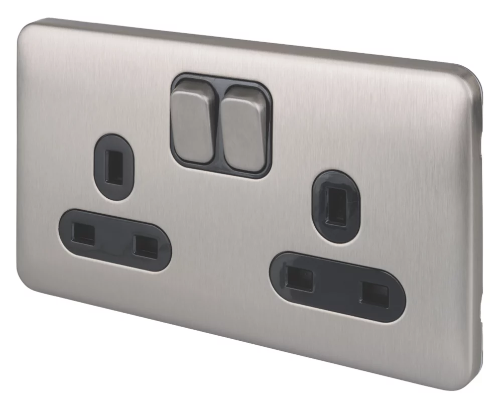 Schneider Electric Lisse Deco 1-Gang Triplex Multimedia Socket Polished Chrome With Black Inserts