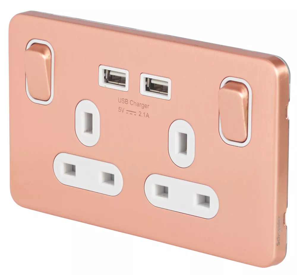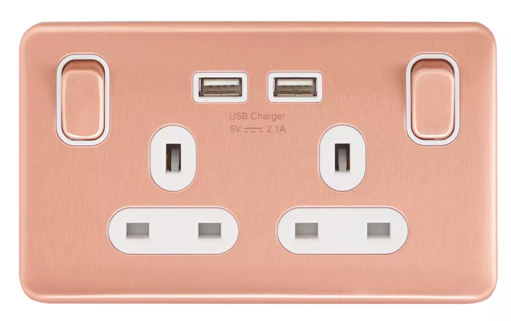 MK Contoura 13A 1-Gang DP Switched Socket + 2A 2-Outlet Type A USB Charger Grey With White Inserts