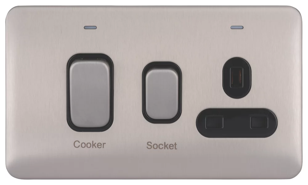 Schneider Electric Lisse Deco 13A 2-Gang DP Switched Plug Socket Mocha Bronze With Black Inserts