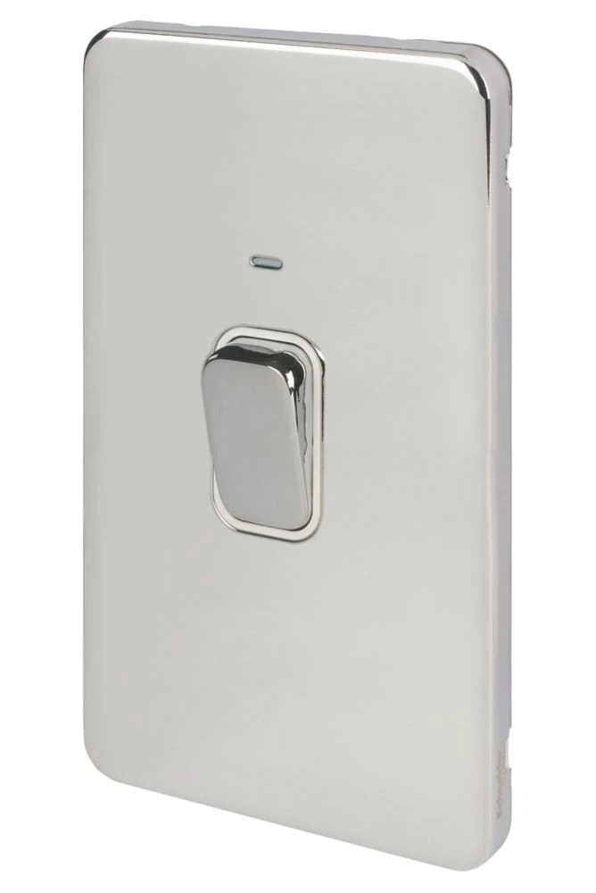 Schneider Electric Lisse Deco 50A 2-Gang DP Cooker Switch Polished Chrome With LED With White Inserts