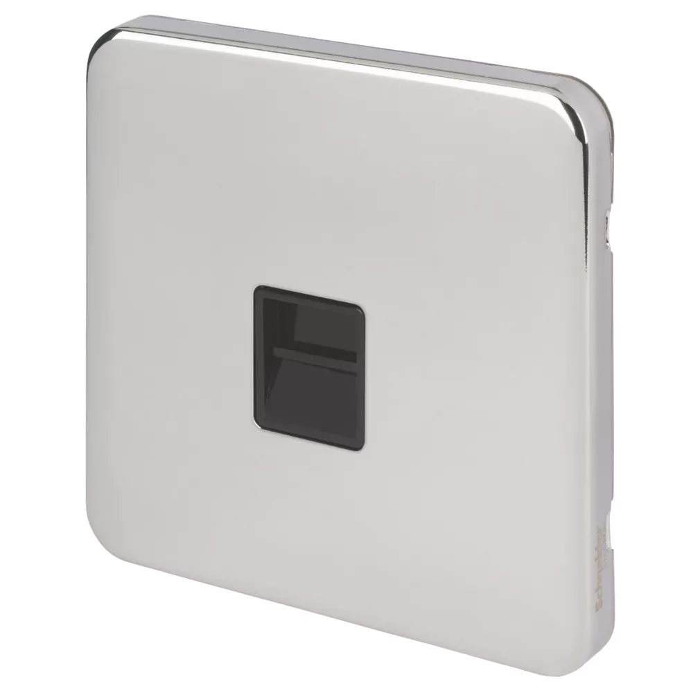 Schneider Electric Lisse Deco Slave Telephone Socket Polished Chrome With Black Inserts