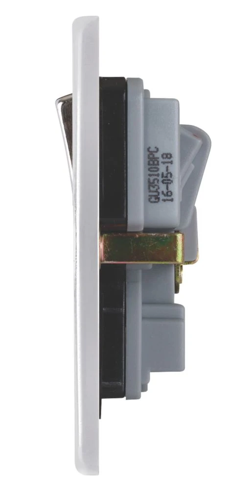Slimline 1-gang switched socket with contemporary soft-curved edge and concealed fittings.