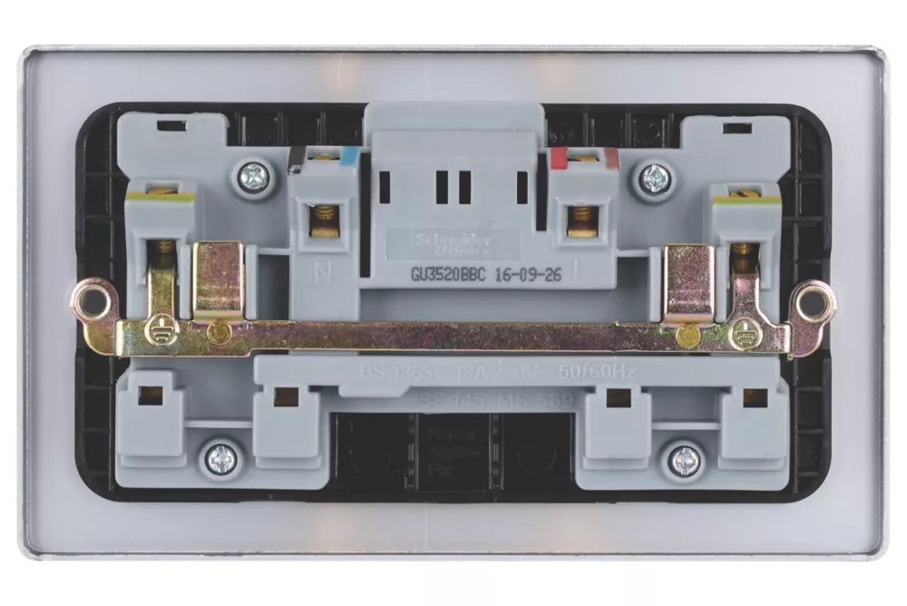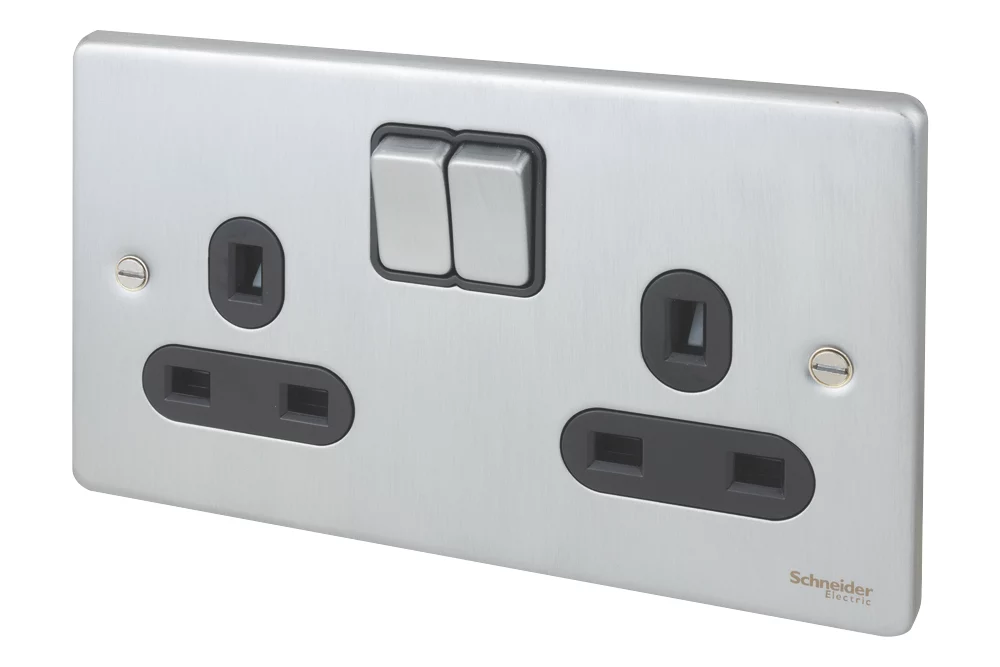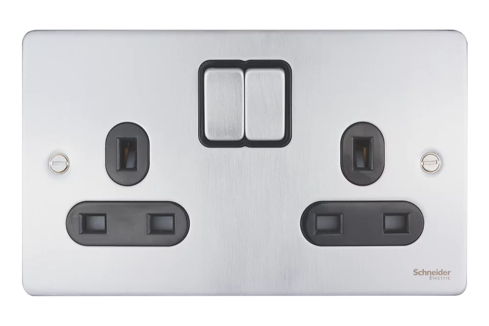 Knightsbridge FPR9000BC 13A 2-Gang DP Switched Double Socket Brushed Chrome With Black Inserts