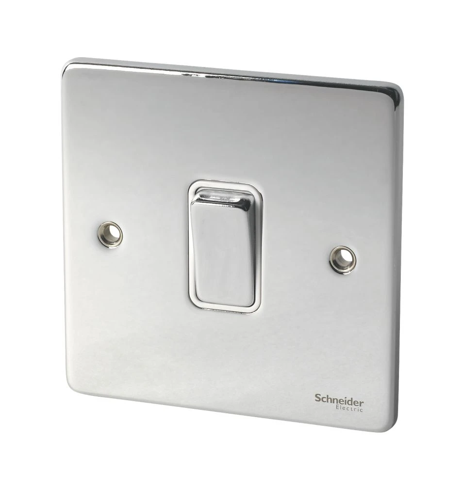 Schneider Electric Lisse Deco 13A 1-Gang SP Switched Plug Socket Polished Chrome With Black Inserts