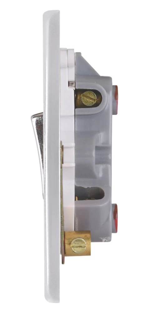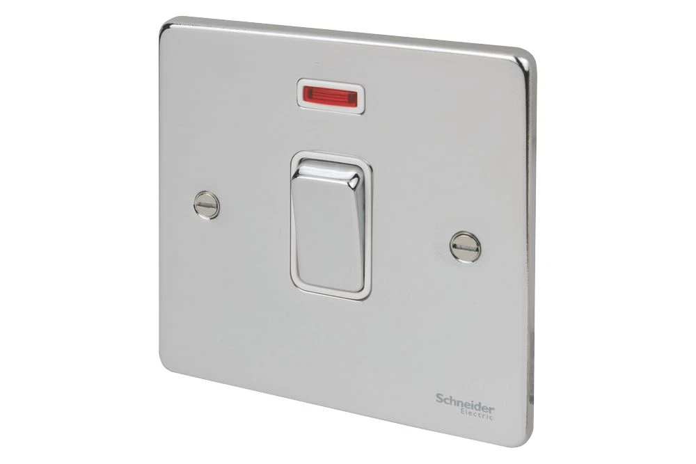 Low profile 20A double pole switch with neon indicator.