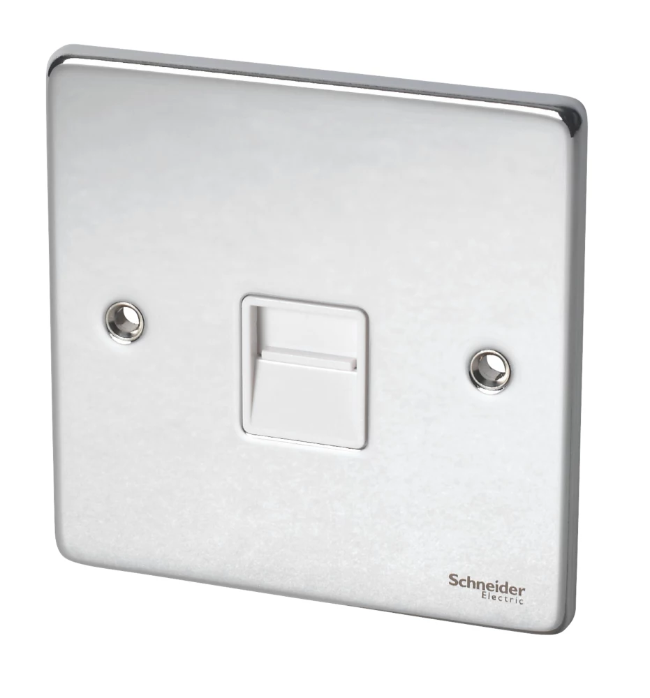 Schneider Electric Lisse Deco 13A 1-Gang SP Switched Plug Socket Polished Chrome With Black Inserts
