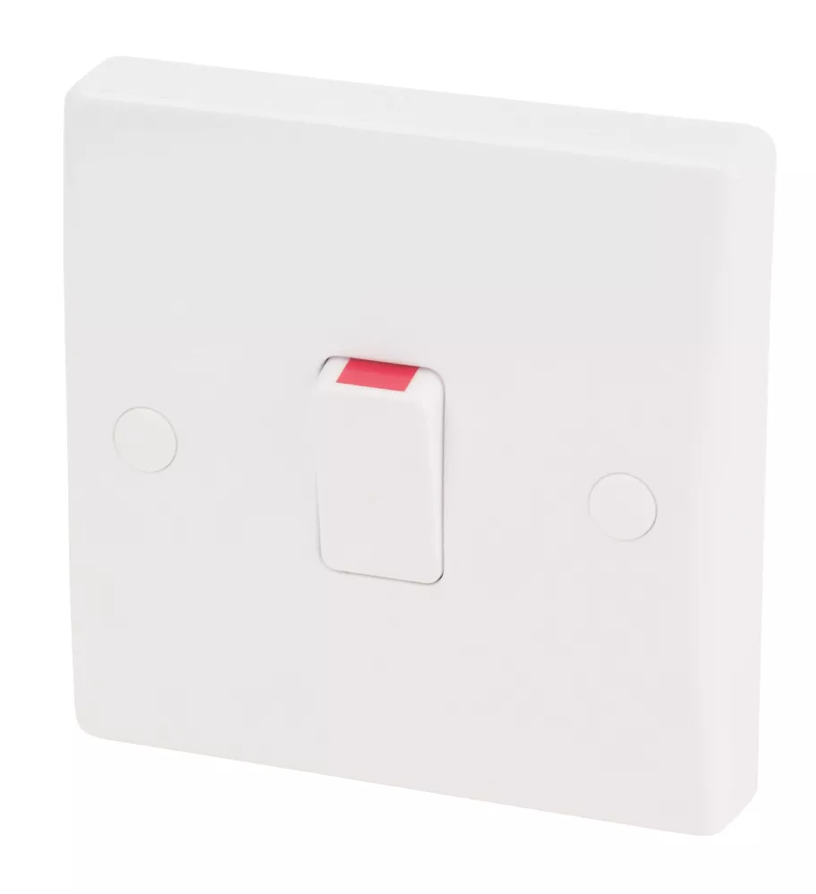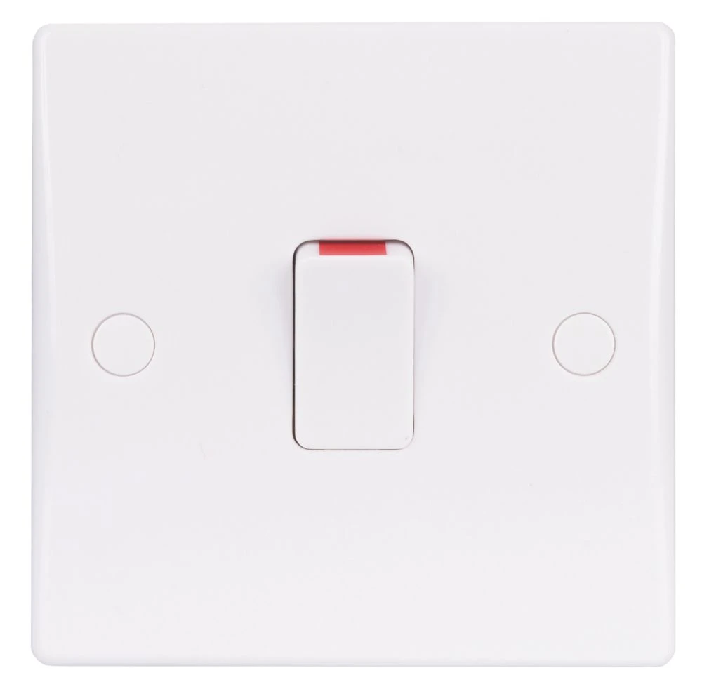 20A switch with an ultra-slim, curved profile and gloss white finish.
