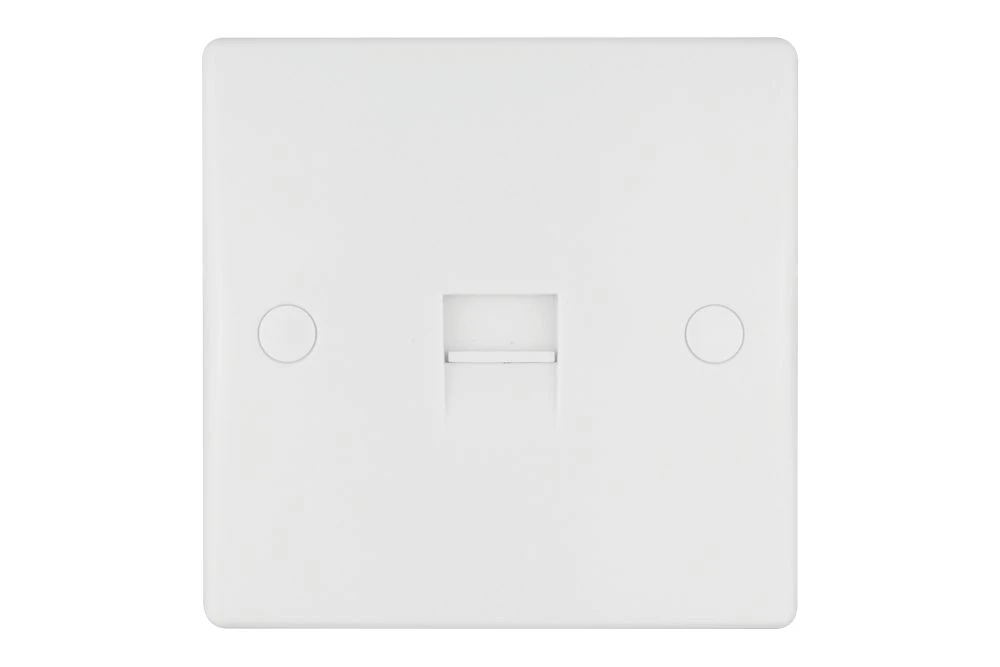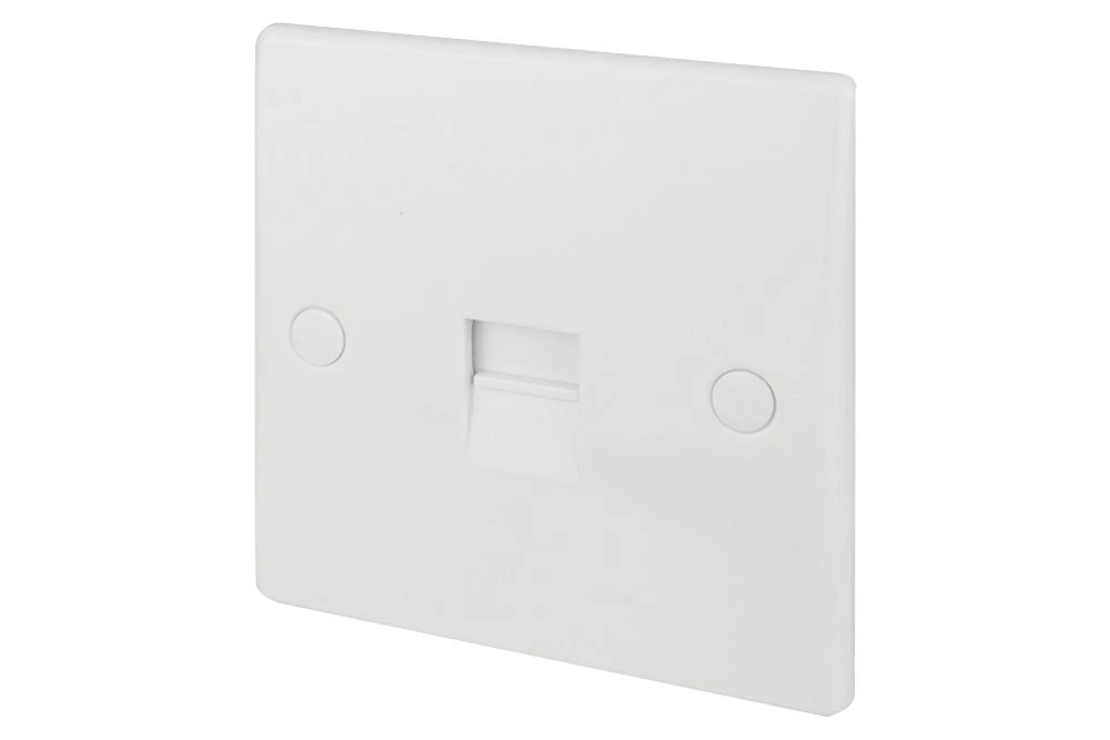 Slimline slave telephone outlet. Curved profile. Easy to install features.