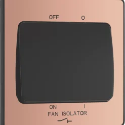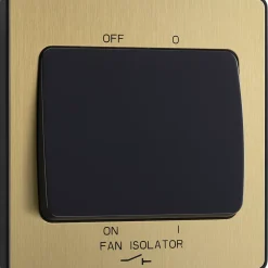 British General Evolve 10A 1-Gang 3-Pole Fan Isolator Switch Satin Brass With Black Inserts