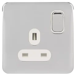 Schneider Electric Lisse Deco 13A 1-Gang DP Switched Plug Socket Polished Chrome With White Inserts