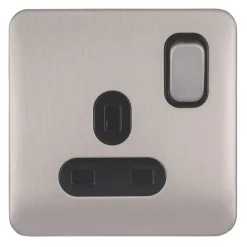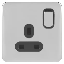 Schneider Electric Lisse Deco 13A 1-Gang SP Switched Plug Socket Polished Chrome With Black Inserts