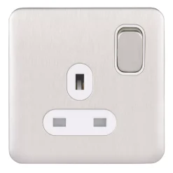 Schneider Electric Lisse Deco 13A 1-Gang SP Switched Plug Socket Polished Chrome With White Inserts
