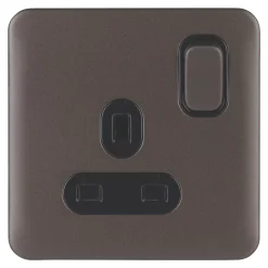 Schneider Electric Lisse Deco 13A 1-Gang SP Switched Plug Socket Mocha Bronze With Black Inserts