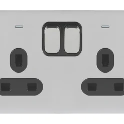 Schneider Electric Lisse Deco 13A 2-Gang DP Switched Plug Socket Mocha Bronze With Black Inserts