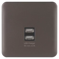 Schneider Electric Lisse Deco 3.1A 2-Outlet Type A USB Socket Mocha Bronze With Black Inserts