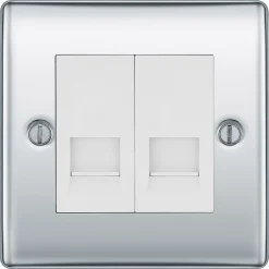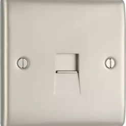 British General Nexus Metal Master Telephone Socket Pearl Nickel With Colour-Matched Inserts