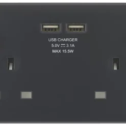British General Part M 13A 2-Gang SP Switched Socket + 3.1A 2-Outlet Type A USB Charger Charcoal