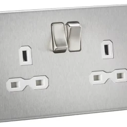 Knightsbridge SFR9000BCW 13A 2-Gang DP Switched Double Socket Brushed Chrome With White Inserts