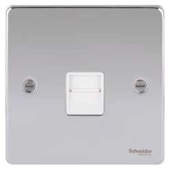 Schneider Electric Ultimate Low Profile Slave Telephone Socket Polished Chrome With White Inserts