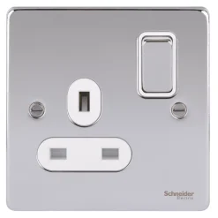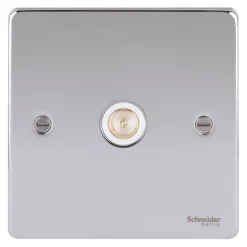 Schneider Electric Ultimate Low Profile 1-Gang Coaxial TV Socket Polished Chrome With White Inserts