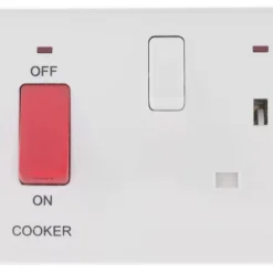 British General 800 Series 45A 2-Gang DP Cooker Switch & 13A DP Switched Socket White With LED