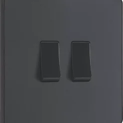British General Evolve 20 A 16AX 2-Gang 2-Way Wide Rocker Light Switch Matt Black With Black Inserts