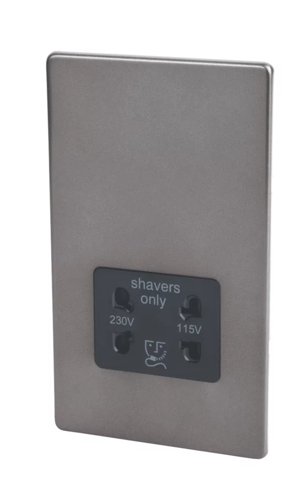 Low profile, removable screwless faceplate with slate grey finish and black inserts for a sleek, contemporary style. Concealed fixings.