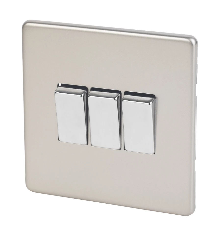 Low profile, removable screwless faceplate with polished chrome controls for a sleek, contemporary style.