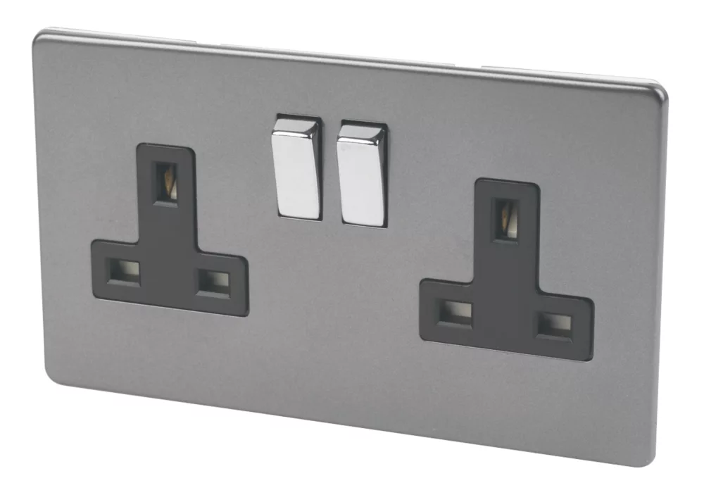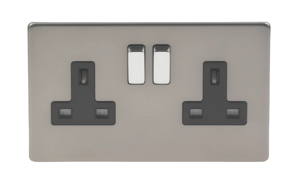 British General Nexus Metal 13A 1-Gang DP Switched Plug Socket Brushed Iridium With Black Inserts