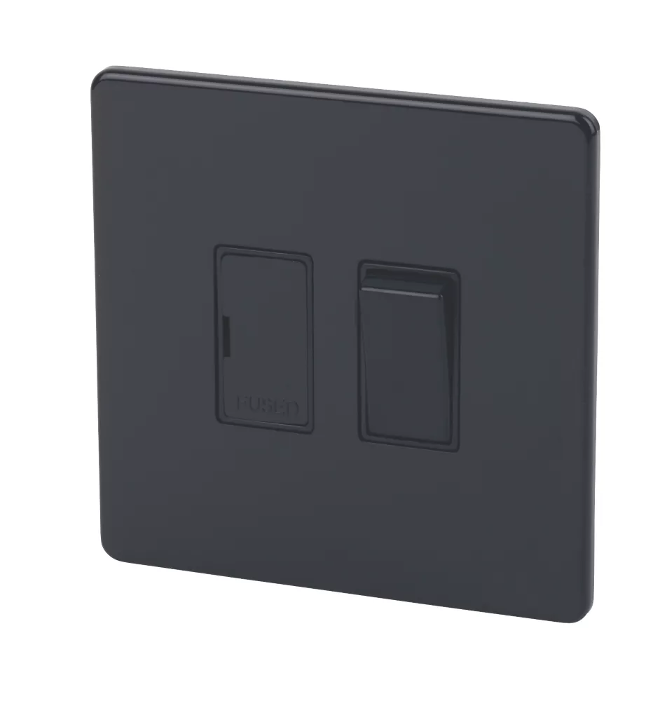 Gloss black, low profile, screwless faceplates matched with rockers and knobs for the ultimate in contemporary switches, sockets and dimmers.
